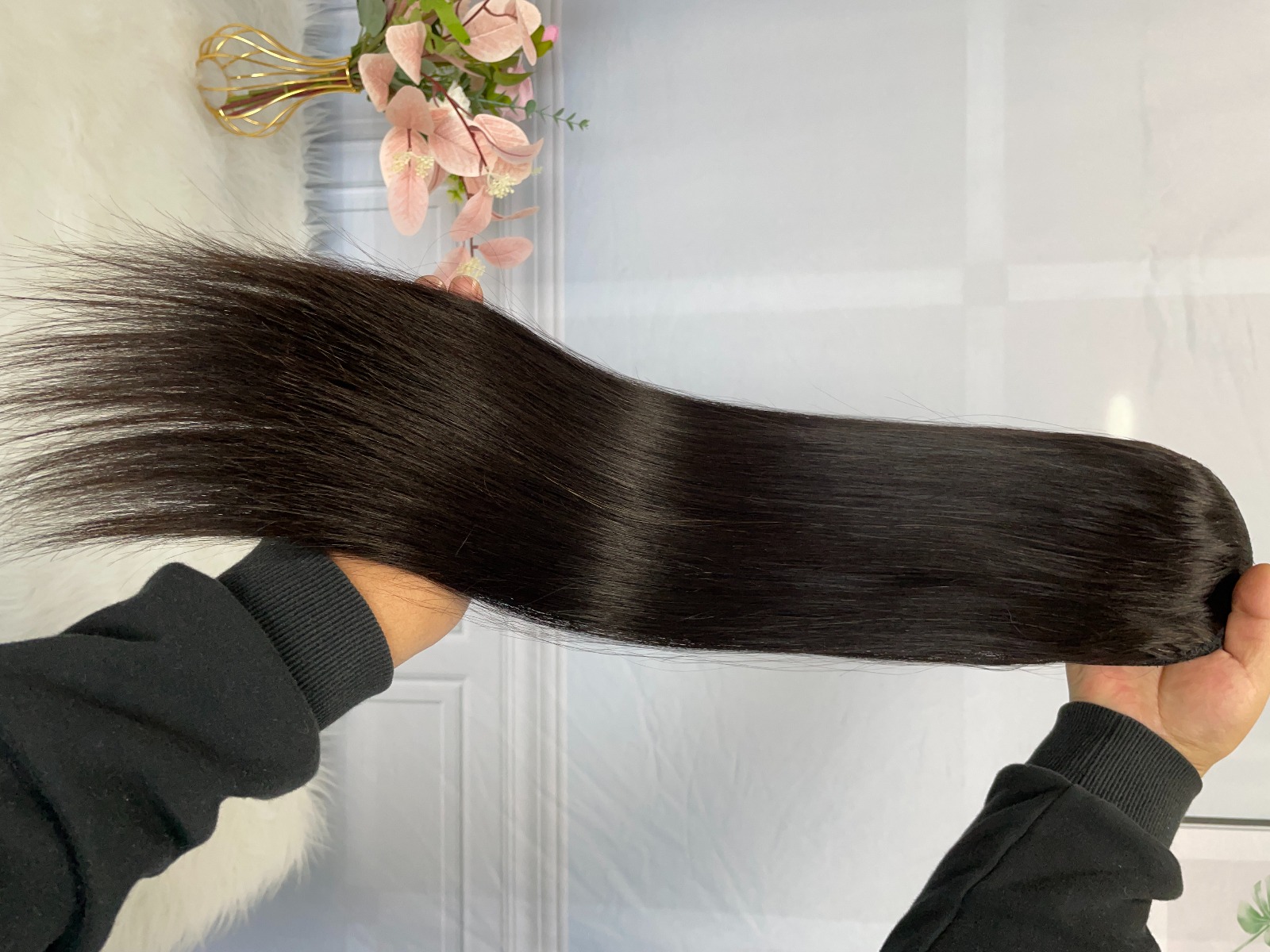 Enhance your look with our 100% 11A super drawn human straight hair wrap-around ponytail extension. This clip-in extension provides a sleek, natural finish that’s easy to style and perfect for any occasion.